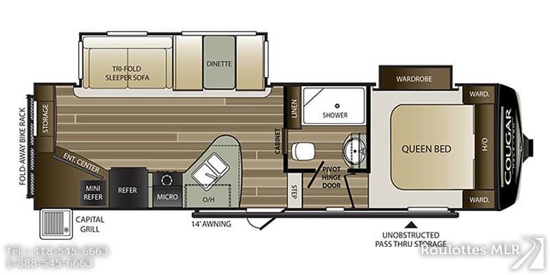 Petite fifthwheel idéale pour couple avec cuisinette extérieure. Poids de seulement 7500 LBS.