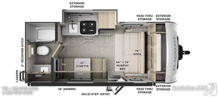 Superbe petite roulotte sous les 3400lbs. Fibre de verre, cap avant moulé, murphy bed et bien plus. Couleurs au goût du jour !