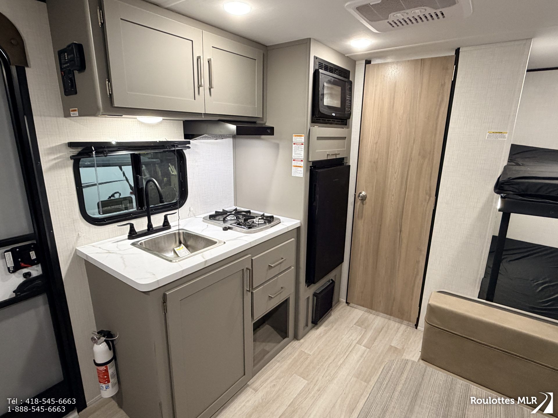 Très jolie petite roulotte idéale pour famille de seulement 3085 lbs. Deux lits superposés pour les enfants, lit fixe pour les parents et toutes les commodités nécessaire pour votre camping !