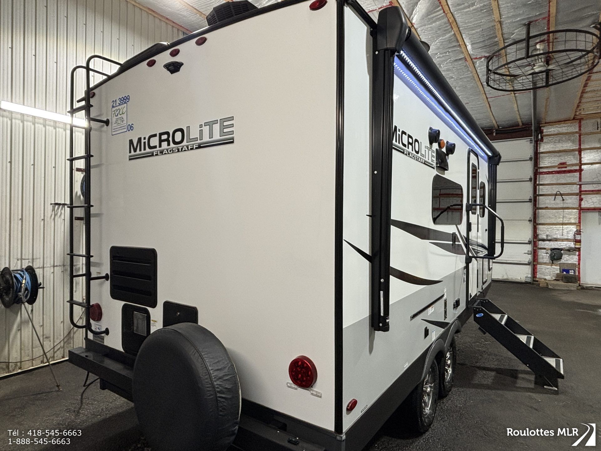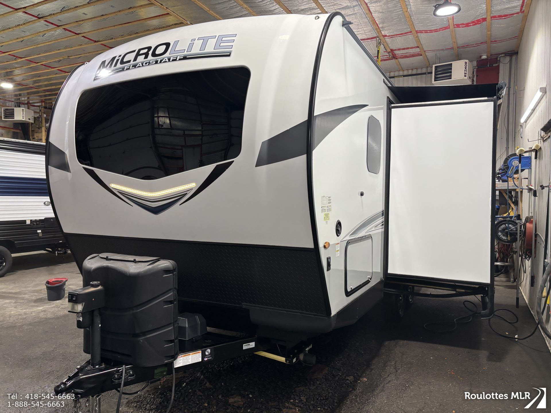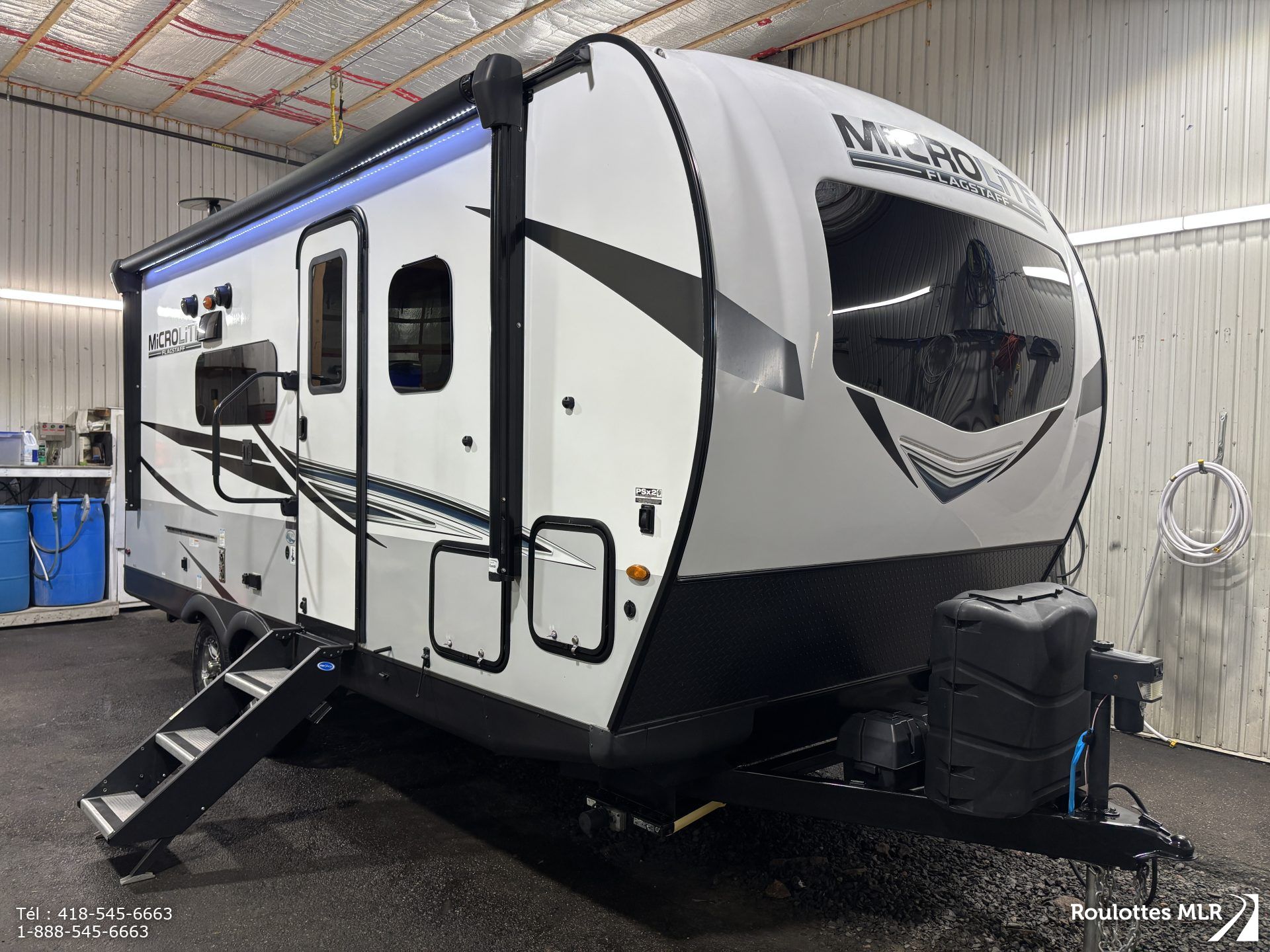 Superbe petite roulotte de qualité idéale pour couple. Lit escamotable, extension avec banquette en ‘U’,matelas neuf, réfrigérateur 3 voies, belle salle de bain, cap avant moulé, stabilisateurs électriques, auvent d’annexe, et bien plus.