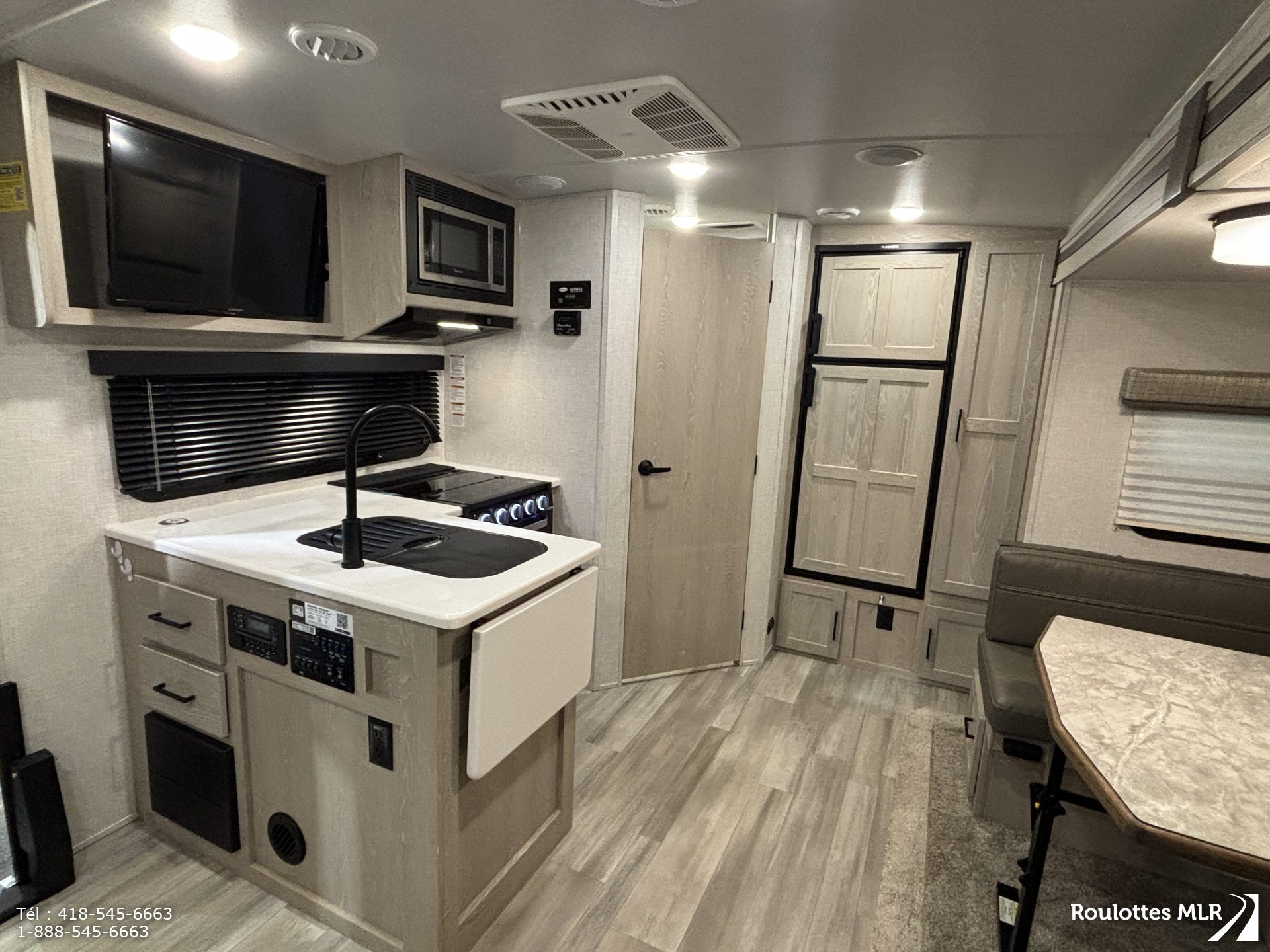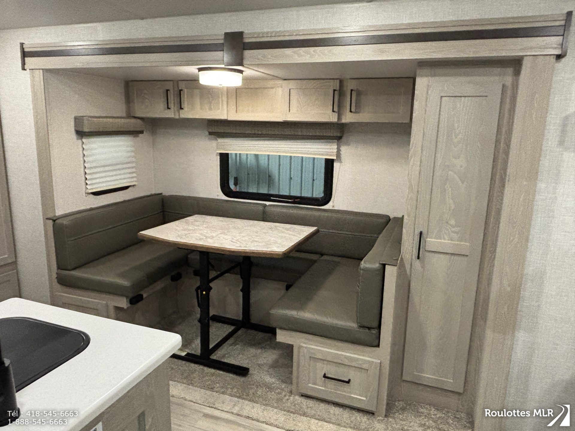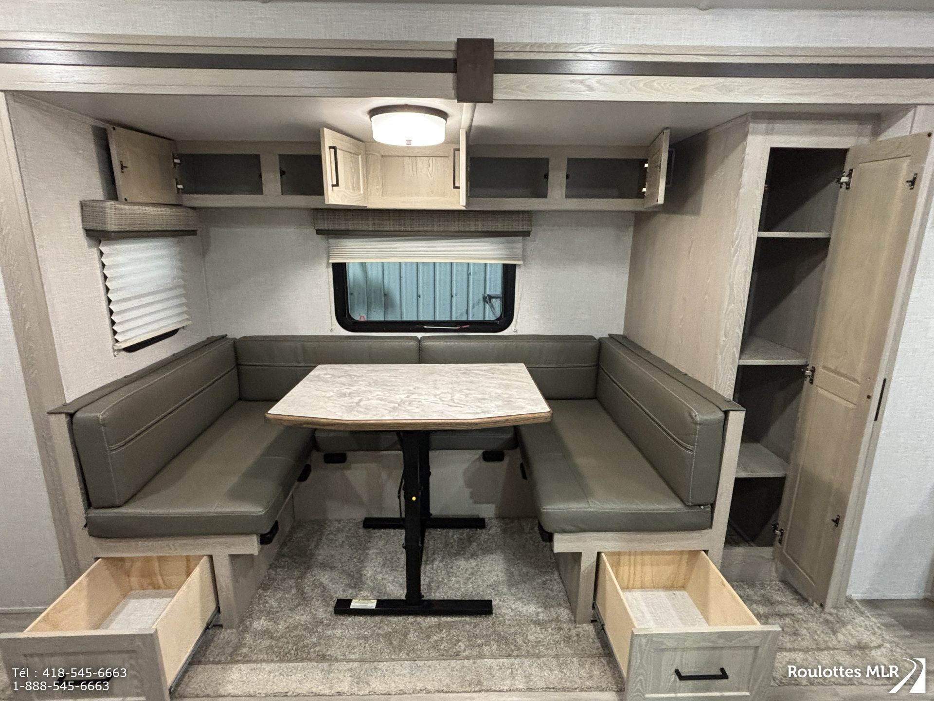 Superbe petite roulotte de qualité idéale pour couple. Lit escamotable, extension avec banquette en ‘U’,matelas neuf, réfrigérateur 3 voies, belle salle de bain, cap avant moulé, stabilisateurs électriques, auvent d’annexe, et bien plus.