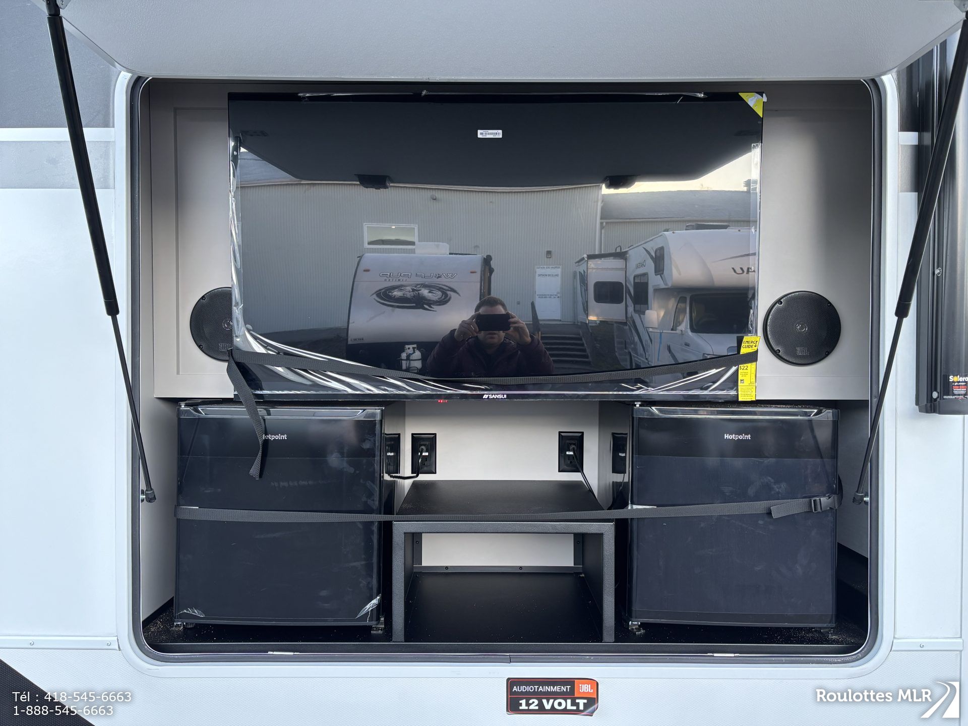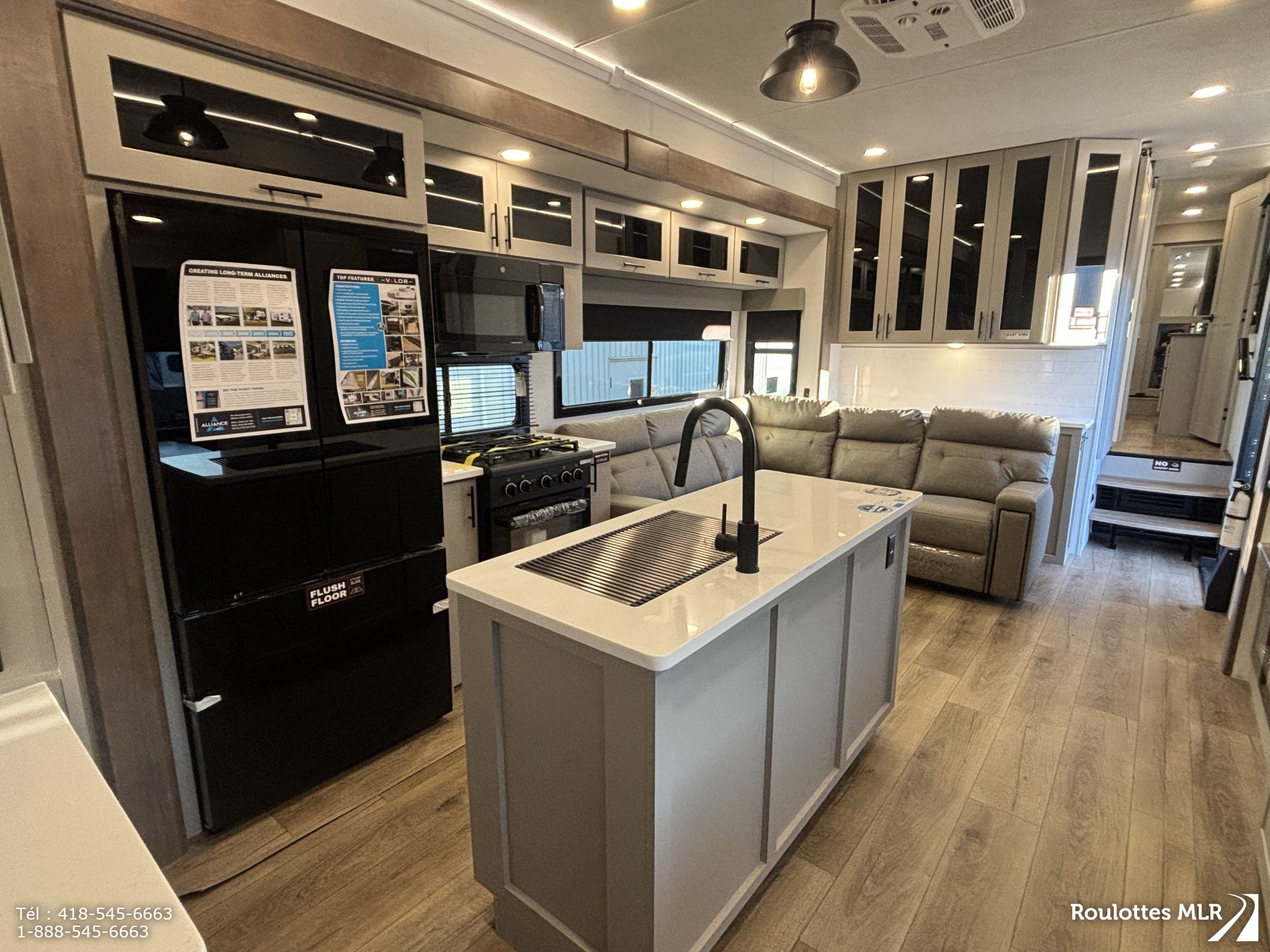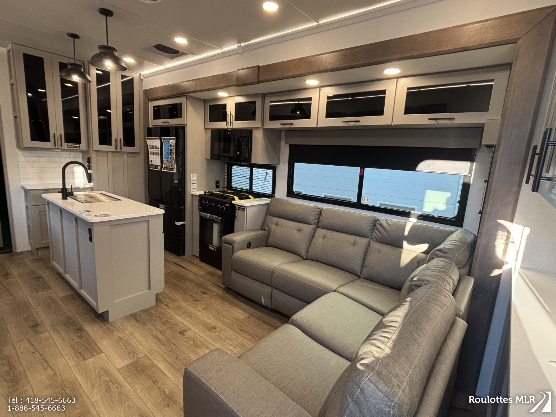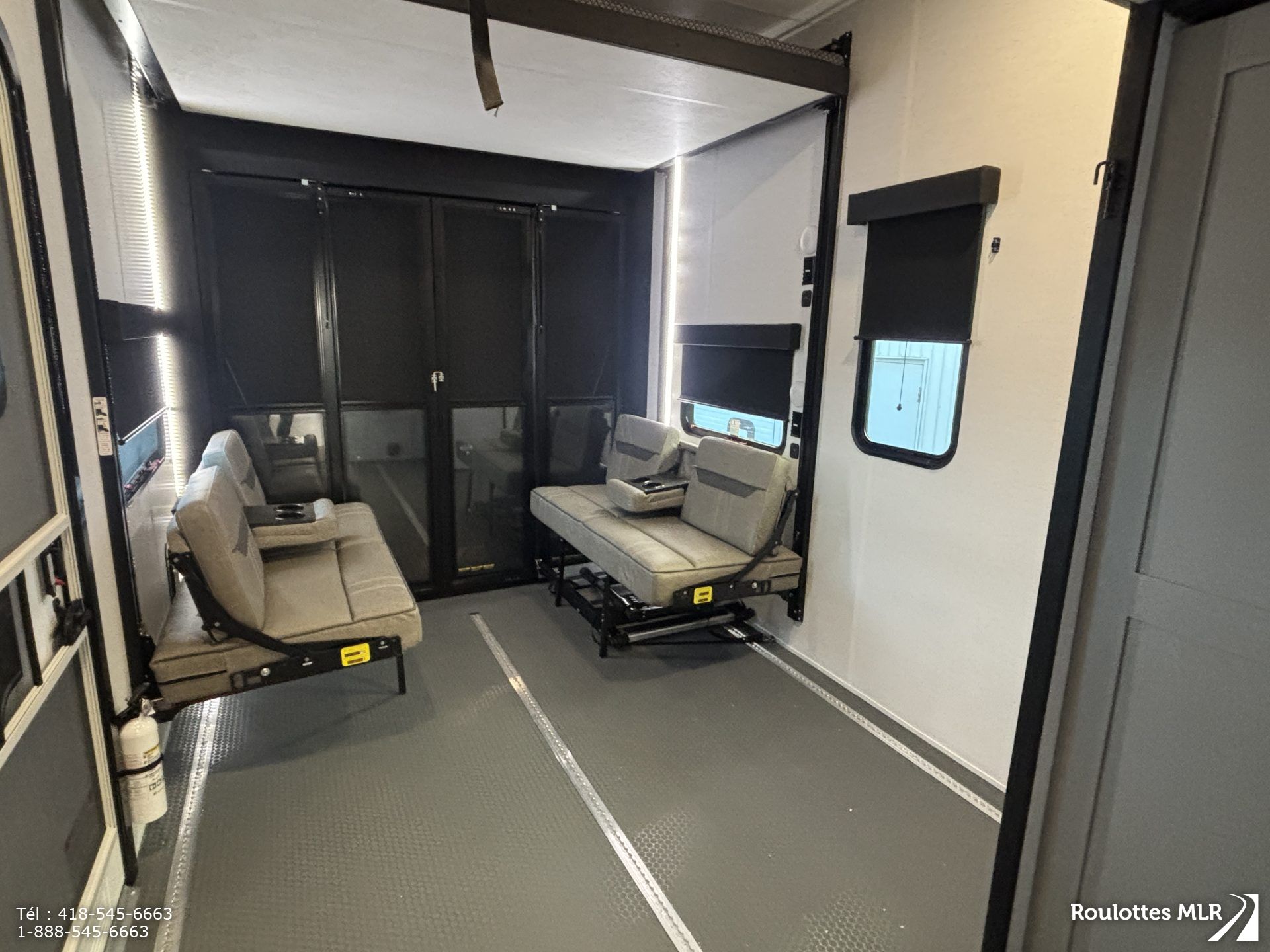 SUPERBE modèle de fifthwheel cargo ! Toute équipée, génératrice, patio et porte-patio, station d’essence, cuisinette extérieure et bien plus.