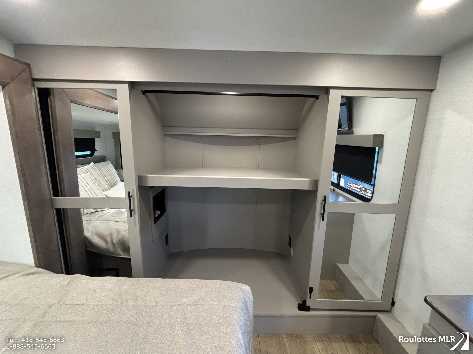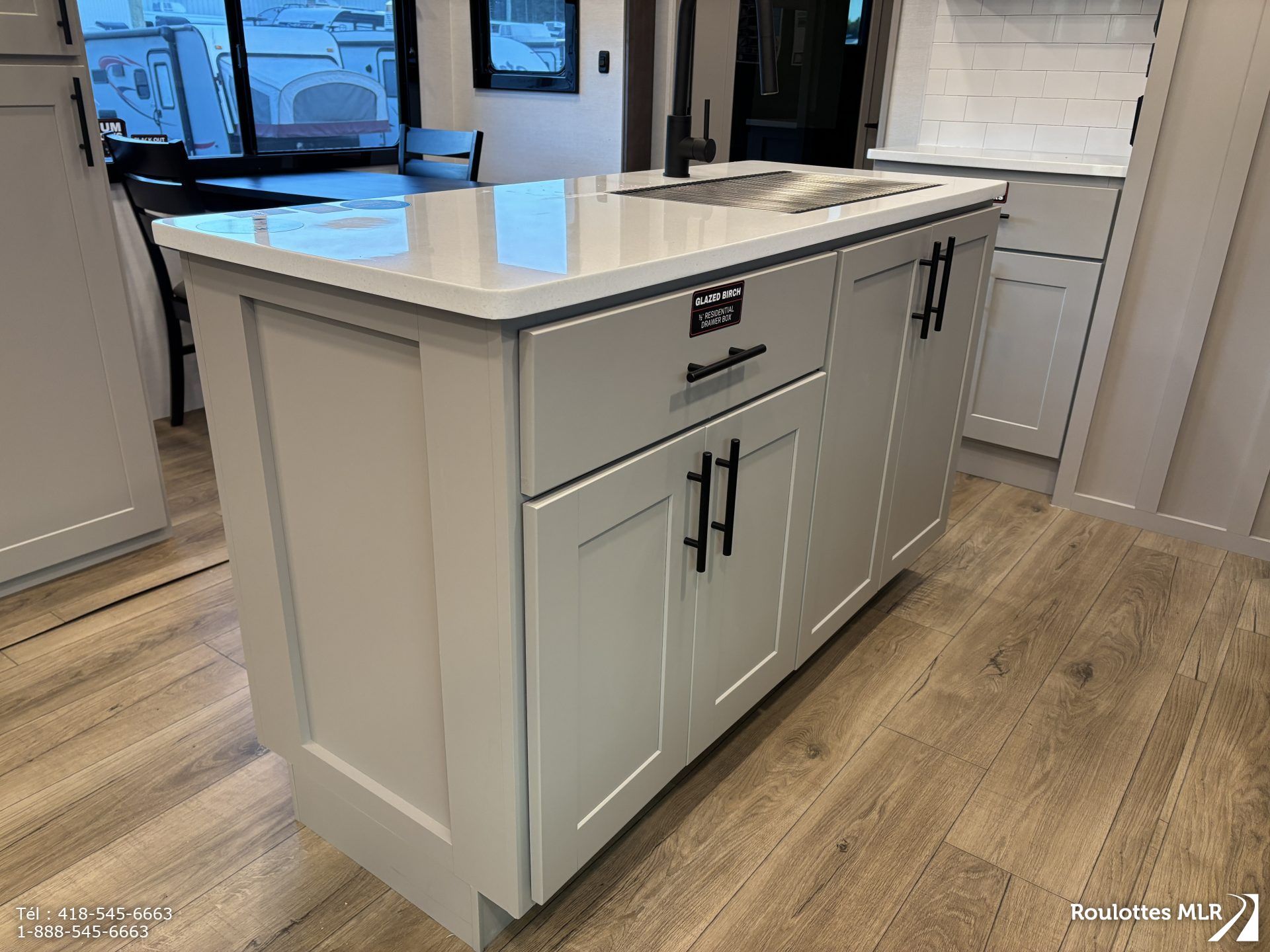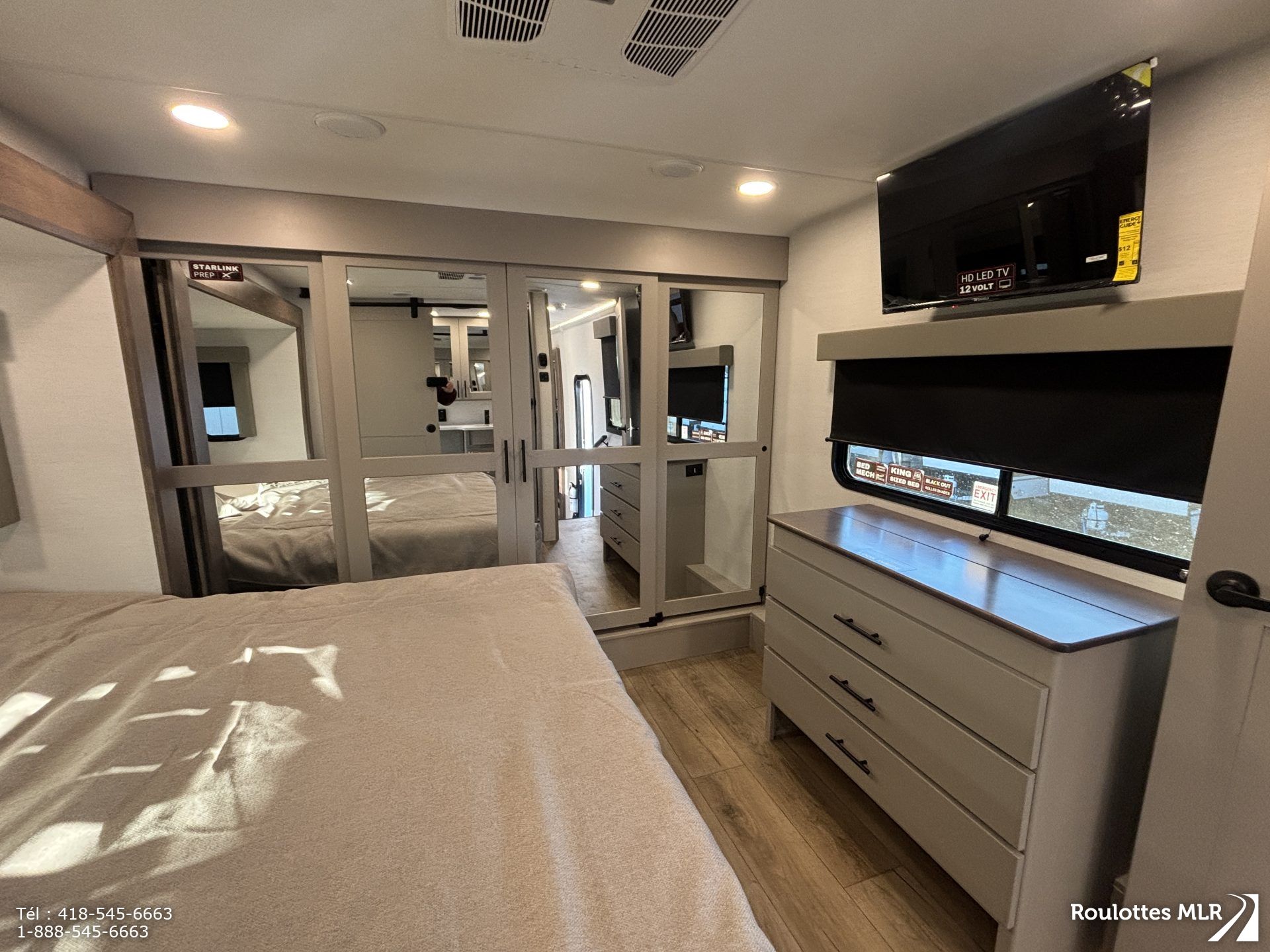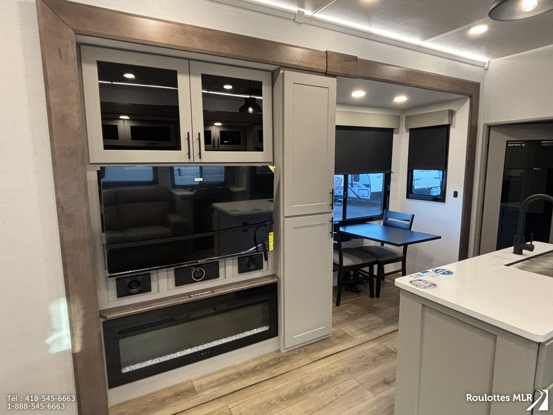SUPERBE modèle de fifthwheel cargo ! Toute équipée, génératrice, patio et porte-patio, station d’essence, cuisinette extérieure et bien plus.